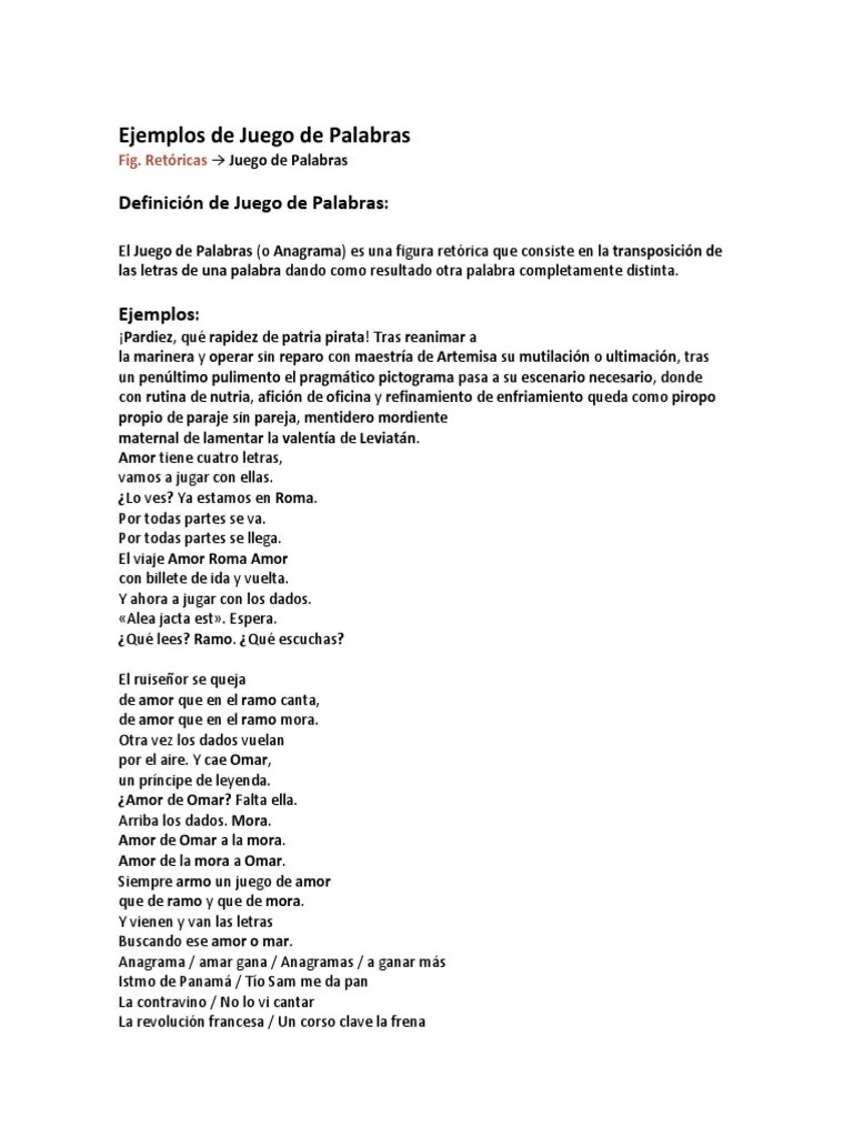 Juegos De Palabras Ejemplos - Ejemplos De Juego De Palabras Pdf